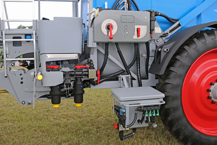 Элементы управления теперь расположены более наглядно, все основные разъемы и патрубки размещены по центру под панелями. А более округлые формы обшивки, цвет в тон другим полевым опрыскивателям из ассортимента компании и светодиодные осветительные приборы добавили привлекательности внешнему виду.
